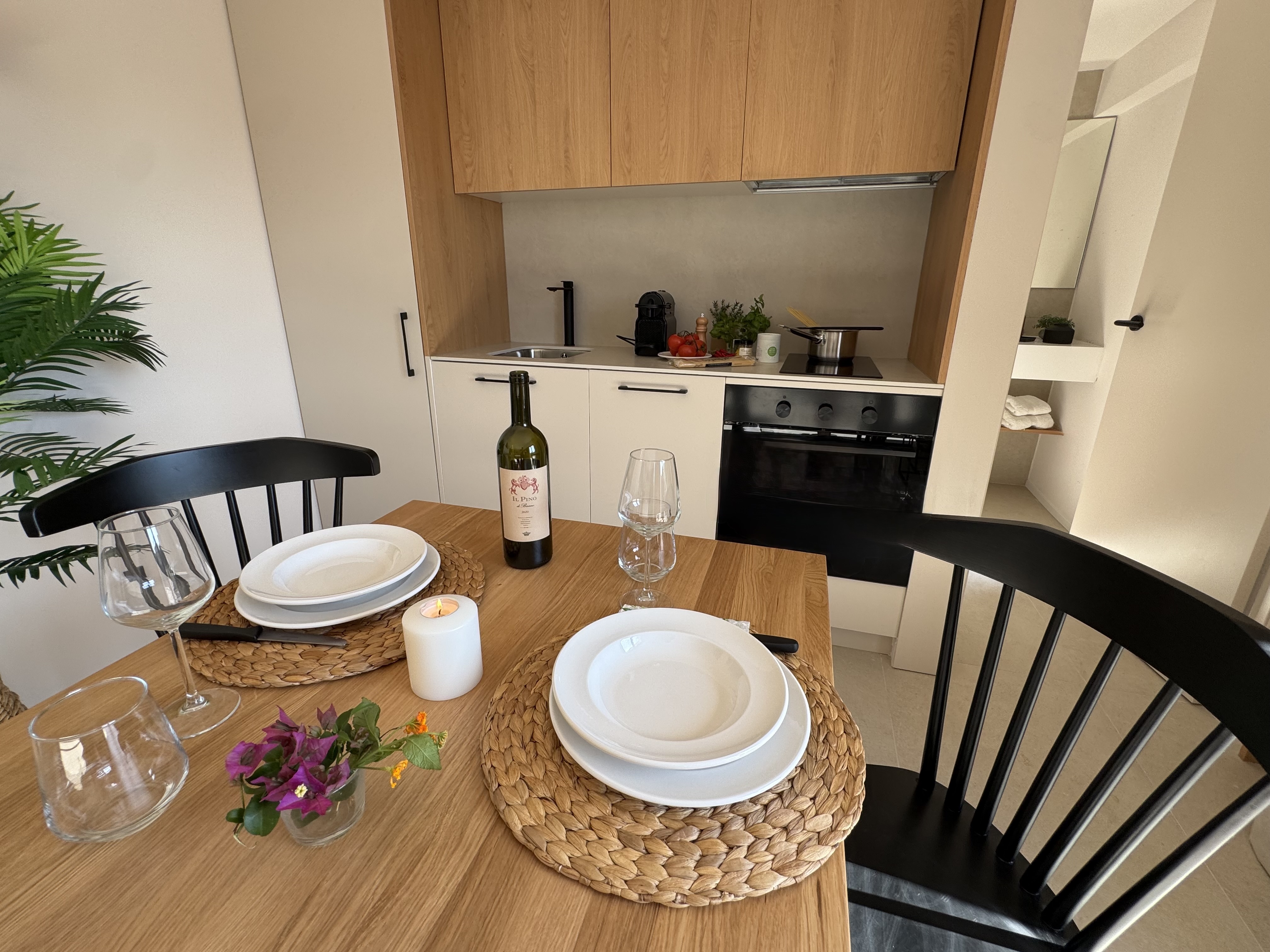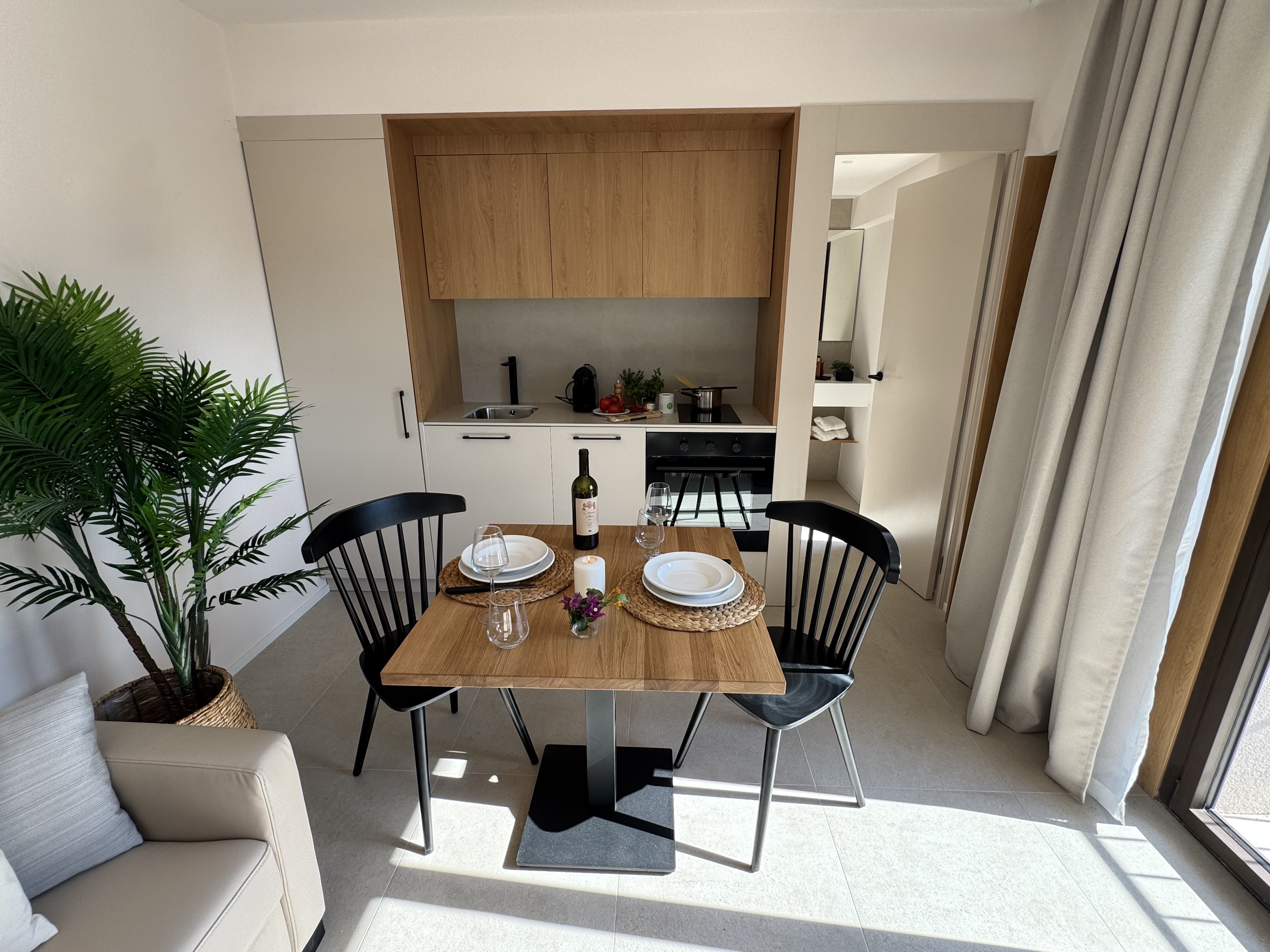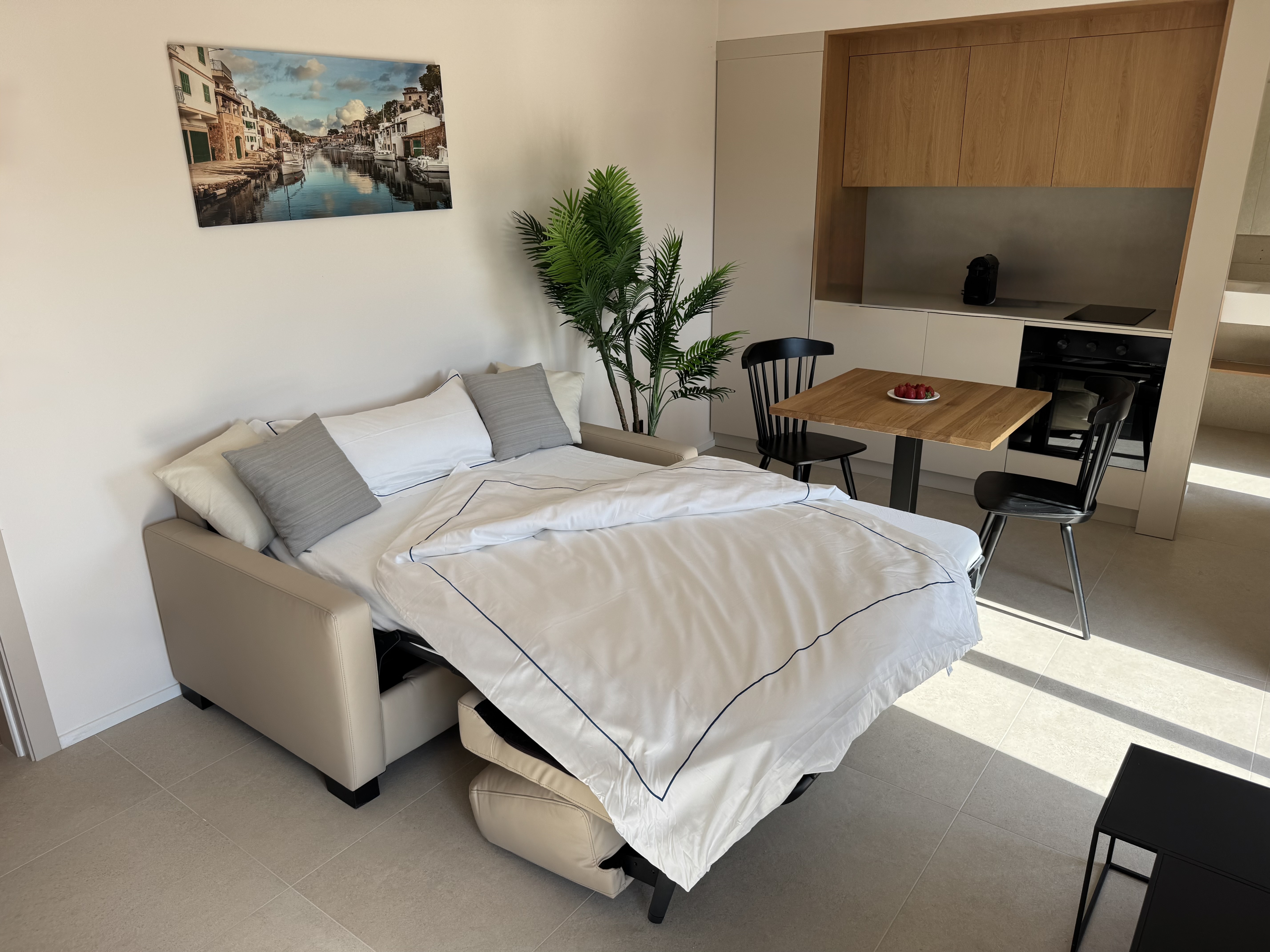 Spacious and elegant, our Master Suite offers a separate bedroom, a modern living area with kitchenette, and a private balcony. Ideal for longer stays or families seeking comfort, privacy, and the authentic Mediterranean lifestyle.