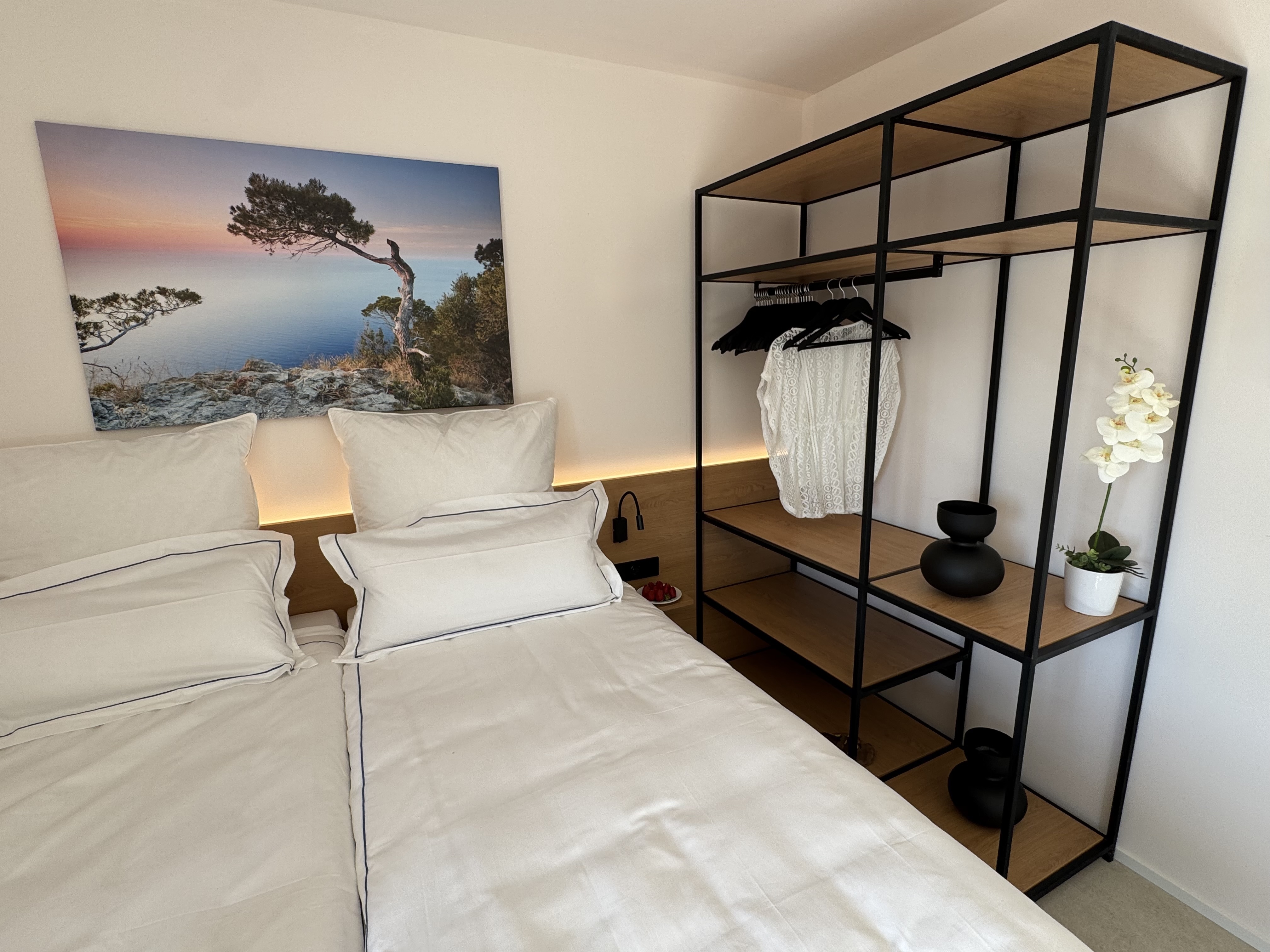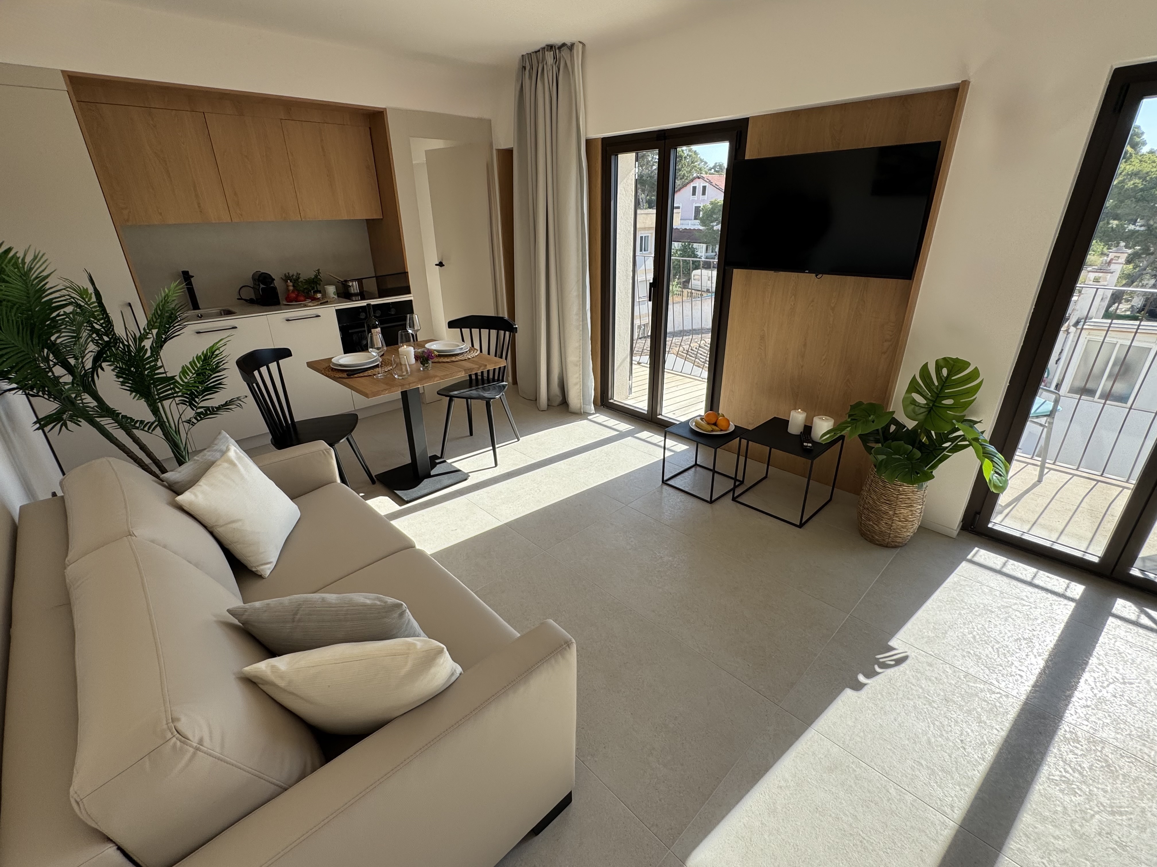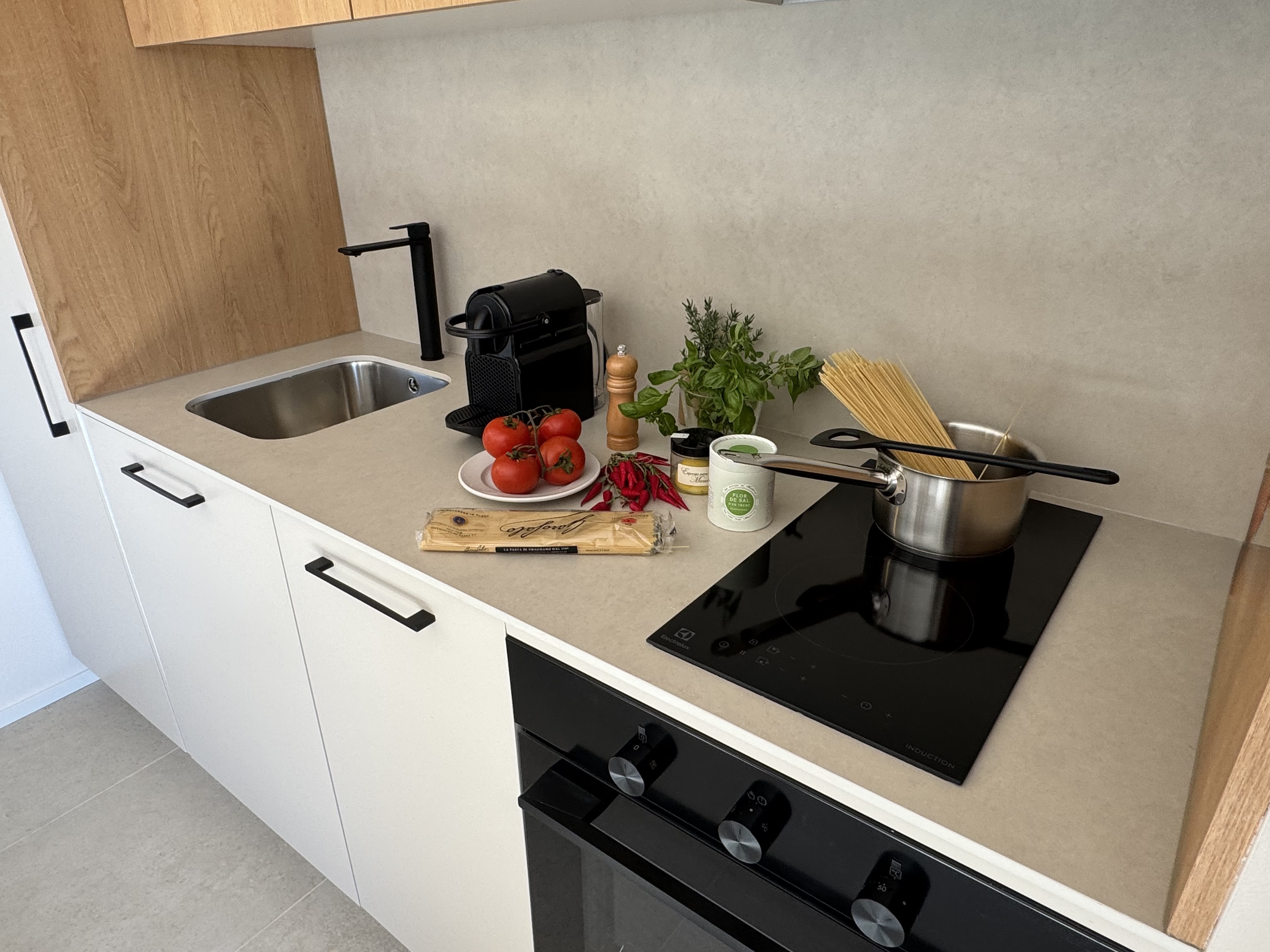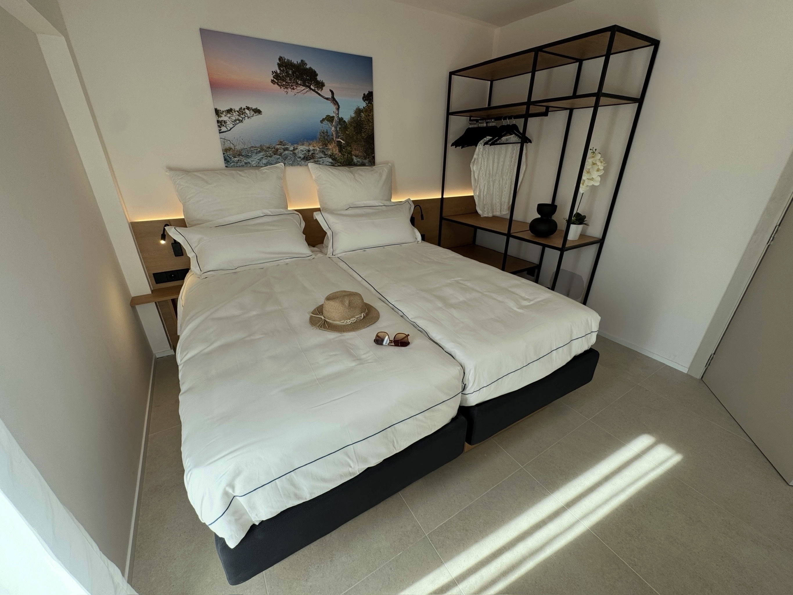Spacious and elegant, our Master Suite offers a separate bedroom, a modern living area with kitchenette, and a private balcony. Ideal for longer stays or families seeking comfort, privacy, and the authentic Mediterranean lifestyle.